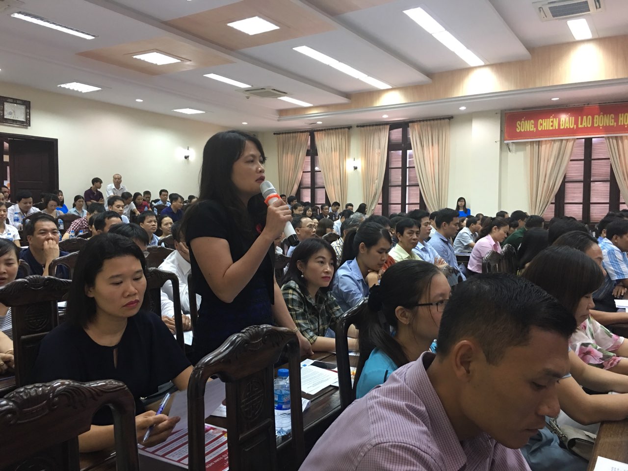 Trong chương trình đối thoại với lãnh đạo tỉnh cùng sở ban ngành, chị Nguyễn Thị Thanh Hải – Kế toán trưởng Công ty TNHH Ống Thép Hòa Phát đã đại diện phát biểu cảm ơn sự hỗ trợ sâu sắc của địa phương và mong nhận được sự quan tâm hỗ trợ, tạo điều kiện hơn nữa để Tập đoàn Hoà Phát phát triển vững chắc, đóng góp ngày càng lớn cho ngân sách tỉnh nhà.