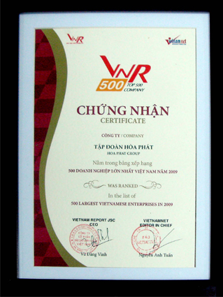 Ngày 25/11 công ty cổ phần Báo cáo đánh giá Việt Nam (VietNam Report) kết hợp với Báo VietNamNet công bố bảng xếp hạng VNR500 - TOP 500 doanh nghiệp lớn nhất Việt Nam 2010. Trong đó công ty Cổ Phần ...