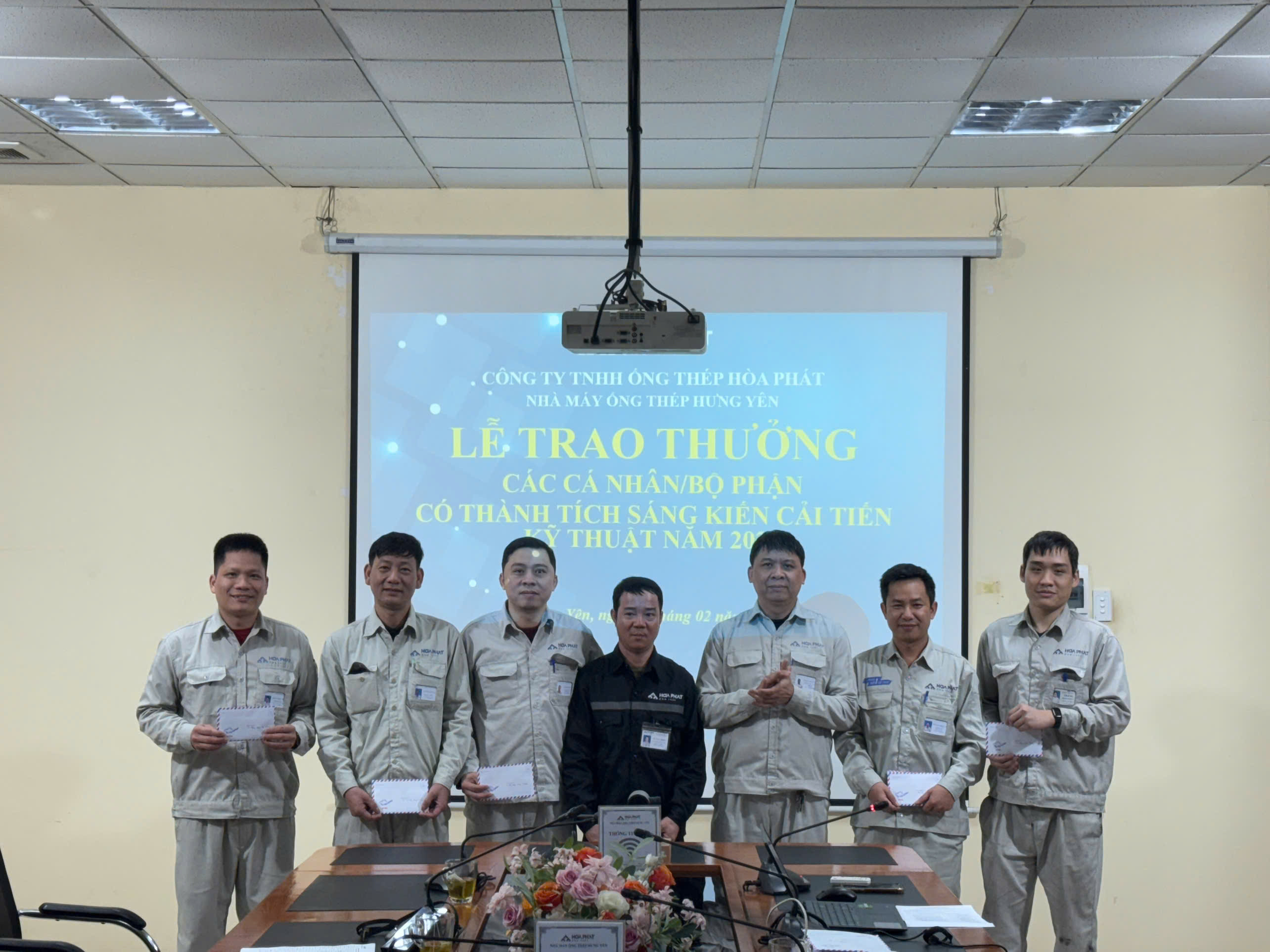 Ngày 17/2/2025, Công ty Ống thép Hòa Phát đã tổ chức biểu dương, khen thưởng cho các bộ phận, cá nhân có thành tích trong sáng kiến cải tiến kỹ thuật, tối ưu hóa sản xuất, tăng năng suất lao động, tiết giảm tiêu hao tại Nhà máy Ống thép Hòa Phát Hưng Yên.