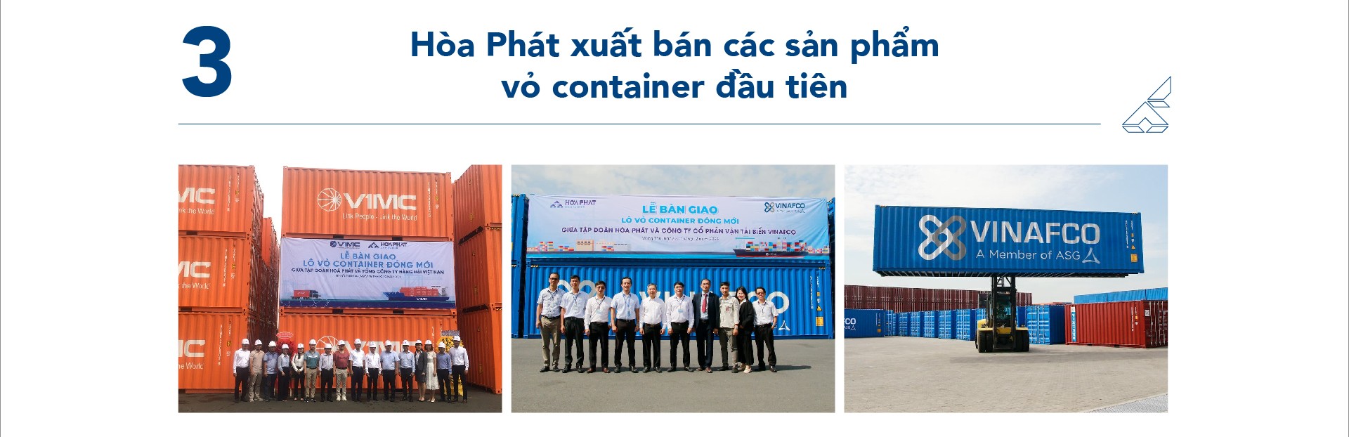 Tiếp đó, Công ty đã bàn giao lô container đầu tiên cho đối tác Vietsun, đồng thời ký kết hợp đồng mới với Công ty New Way Lines cung cấp 500 container loại 20 feet. Những tháng cuối năm, Hòa Phát đã bàn giao đơn hàng container cho Công ty CP Vận tải biển Vinafco (VFC) và Tổng Công ty Hàng hải Việt Nam (VIMC) với số lượng lớn.