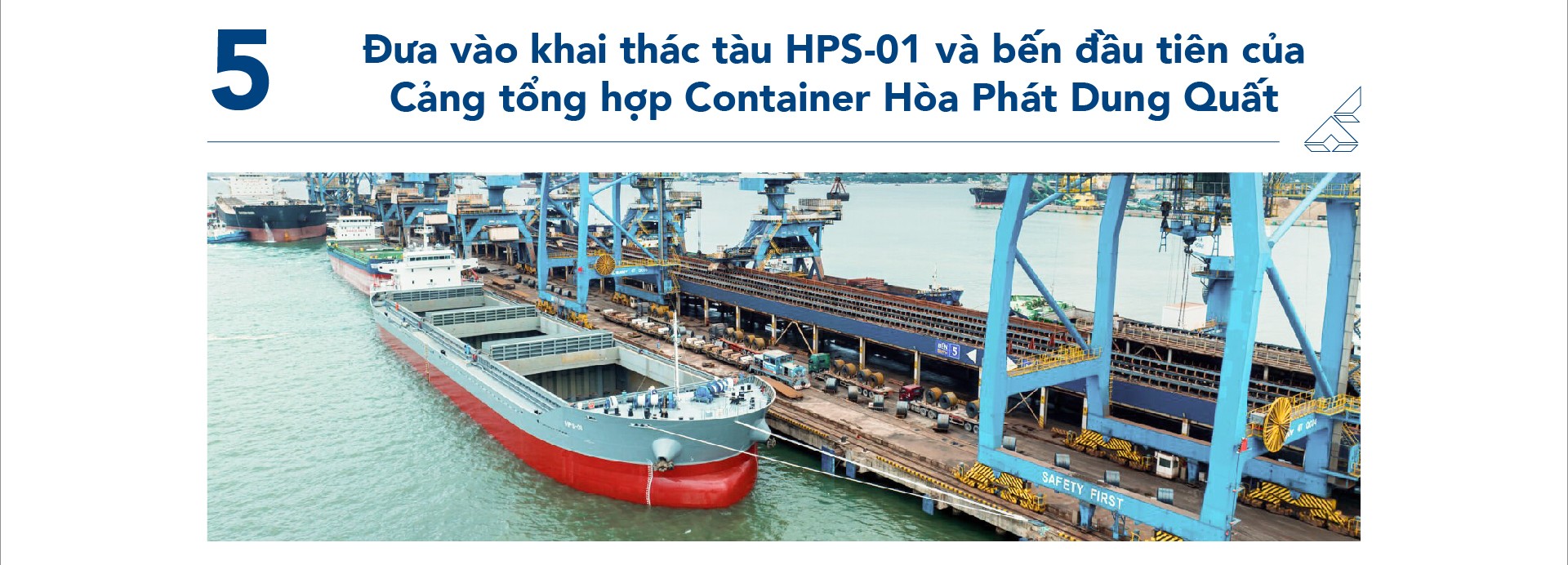 Đầu tháng 12/2023, tàu HPS-01 trọng tải 24.500 tấn được đóng mới của Công ty CP Vận tải biển Hòa Phát đã khởi hành chuyến hàng đầu tiên. Tàu chuyên chở nguyên liệu và thành phẩm trên tuyến thủy nội địa, trong đó chủ yếu là thép cuộn cán nóng (HRC). Ngay sau khi đưa vào khai thác tàu HPS-01, Hòa Phát tiến hành hạ thủy tàu HPS-02 giữa tháng 12/2023 và dự kiến đưa vào khai thác trong Quý I/2024.
