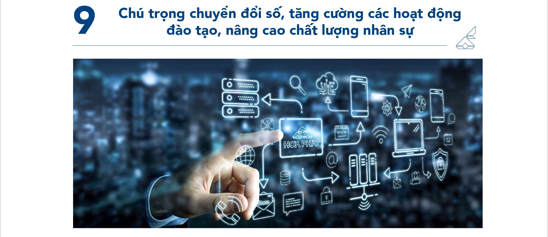 Công tác chuyển đổi số của Tập đoàn đã triển khai nhiều dự án mang tính nền tảng. Dự án Văn phòng điện tử giai đoạn 1 đã được triển khai thành công tại 66 đơn vị, với 4926 người dùng, xấp xỉ 165.000 quy trình và khoảng 11.000 văn bản đã được xử lý trên hệ thống. Hòa Phát đang nghiên cứu triển khai dự án Văn phòng điện tử giai đoạn 2. Dự án Phần mềm nhân sự giai đoạn 1 đang được triển khai đồng bộ, dữ liệu thông tin nhân sự Tập đoàn đã được chuẩn hóa và tiến tới đưa lên phần mềm để sử dụng.