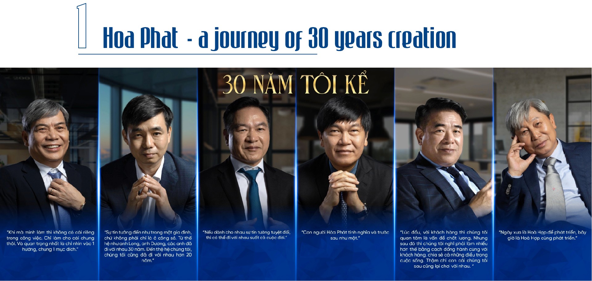 The 30-year journey is the great pride of each Hoa Phat person. The pride is not only of the pioneers, who laid the foundation for the name Hoa Phat in 1992. It is also shared by 30,000 employees both domestically and abroad, who are committed to building and developing Hoa Phat together. Today will be better than yesterday, and tomorrow will certainly be better than today.