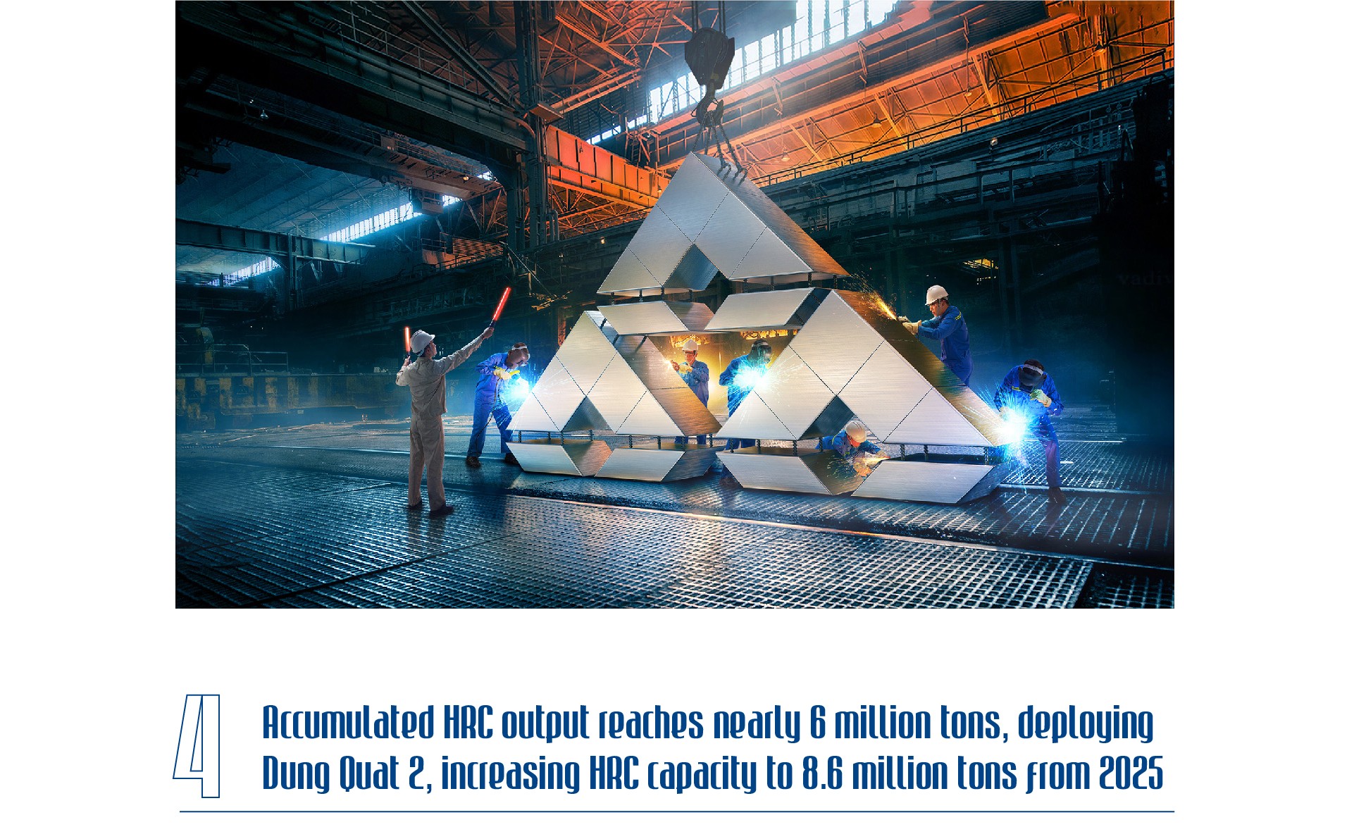 From 2022, Hoa Phat develops the Hoa Phat Dung Quat Steel Integrated Complex 2 project with a capacity of 5.6 million tons of HRC/year, bringing the total annual HRC capacity to 8.6 million tons and production capacity. The Group's crude steel is expected to be more than 14 million tons from 2025.