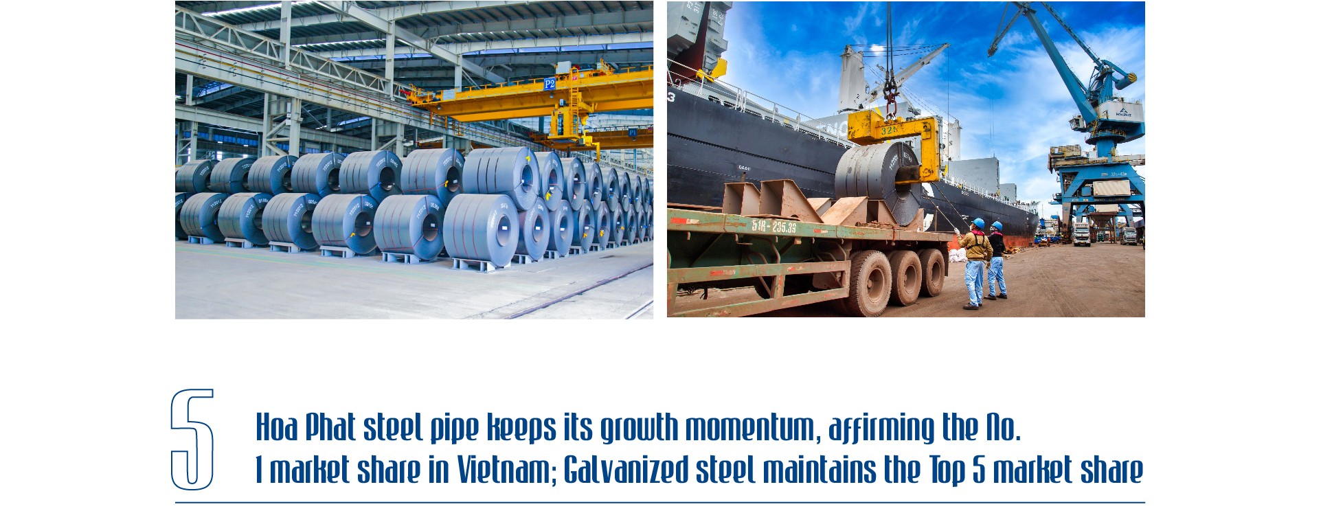 For the whole year, Hoa Phat Steel Pipe's output is expected to exceed 750,000 tons, up about 12% compared to 2021. Hoa Phat Steel Pipe's market share increased from 24.7% (according to the steel association's statistics until the end of 2021) to 29% (by the end of November 2022), affirming the number 1 position in Vietnam.