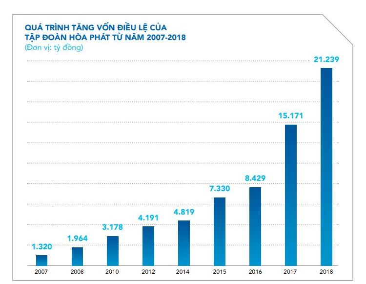Chartered capital growth chart of Hoa Phat Group from 2007 to 2018