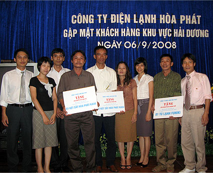 On Sep 6th , 2008, Hoa Phat Refrigeration Engineering Co., Ltd held a meeting with Funiki electric water heater agencies in Hai Duong City. This is the annual activity of Hoa Phat Refrigeration Engineering Co., Ltd to improve and expand the market before starting a business season.