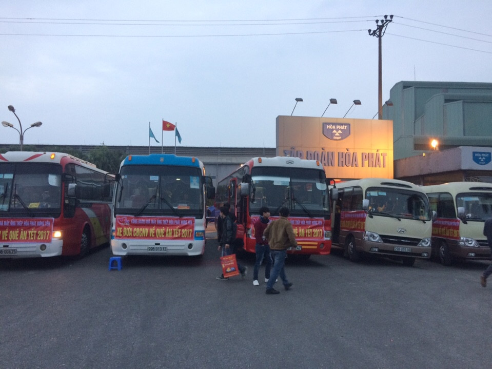 Từ sáng sớm 24/1/2017 (tức ngày 27 Tháng Chạp), Công đoàn Công ty Ống thép Hòa Phát Bình Dương đã thuê xe đưa CBCNV ở xa về quê ăn tết