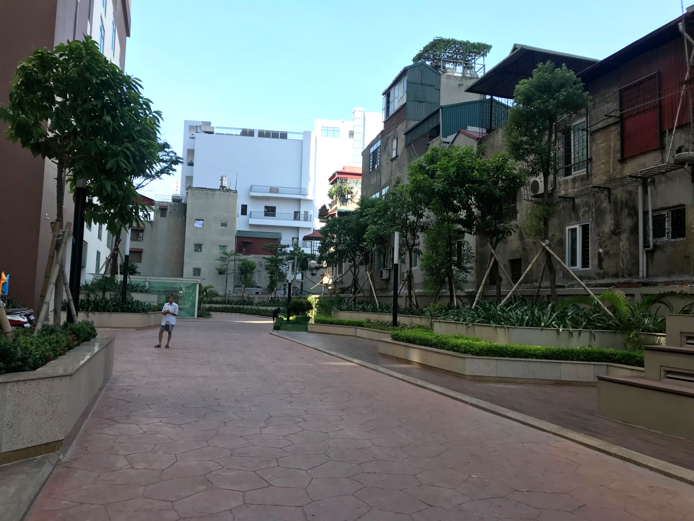 Hệ thống sân vườn và đường dạo giữa các tòa nhà làm phong phú thêm không gian