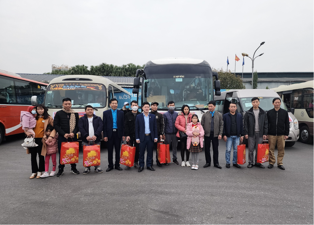 Công ty TNHH Tôn Hòa Phát cũng tổ chức "Chuyến xe đoàn viên" tuyến Hưng Yên - Thanh Hóa - Vinh đưa CBNV cùng gia đình về quê đón Tết.