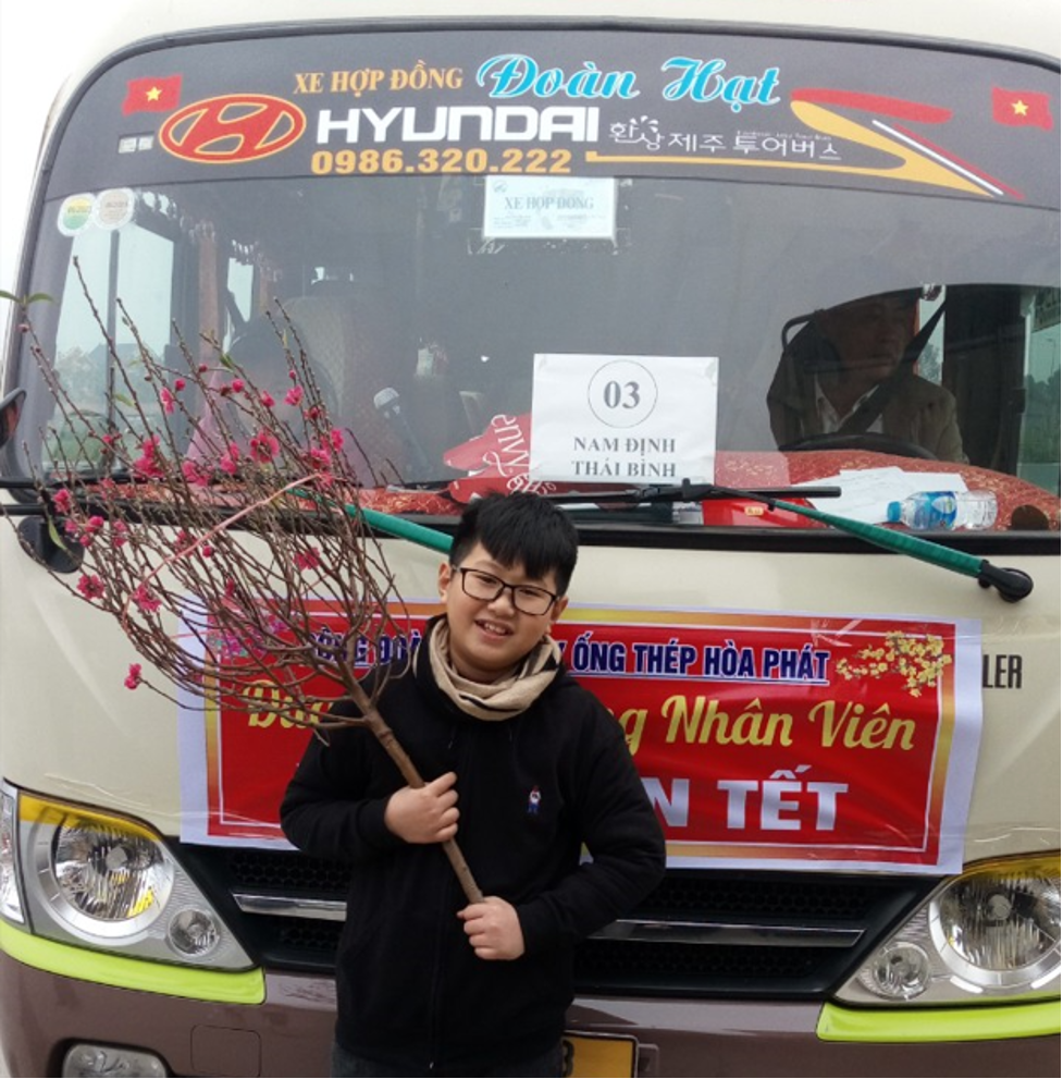 Anh Hà Văn Minh, quê Thanh Hóa hào hứng chia sẻ: “Trước đây, mỗi khi sắp đến Tết, tôi cũng như các đồng nghiệp xa quê lại bị ám ảnh cảnh chen chúc để đặt mua vé tàu, xe. Nhưng từ khi vào làm việc tại Công ty Thép Hòa Phát Dung Quất, nỗi lo ấy đã được xua tan khi mỗi năm đều được công ty hỗ trợ và bố trí xe đưa đón miễn phí về nhà. Điều đó không chỉ giúp chúng tôi tiết kiệm chi phí đi lại mà đặc biệt là đảm bảo an toàn. Tôi thật sự rất vui và an tâm gắn bó với Công ty.”