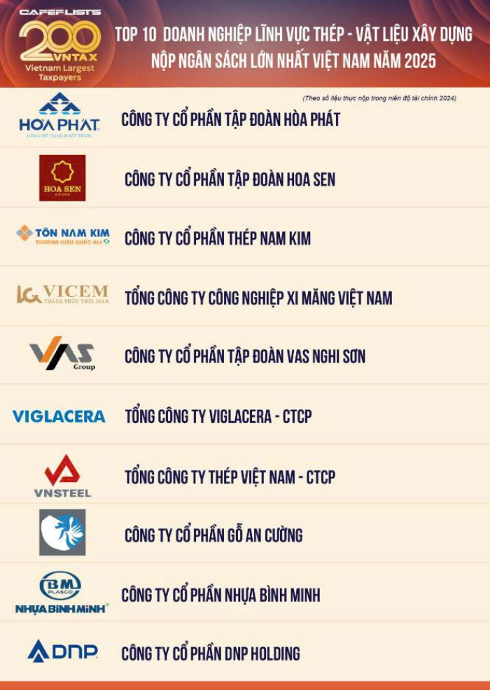 Hòa Phát đứng Top 1 doanh nghiệp thép - vật liệu xây dựng nộp ngân sách lớn nhất Việt Nam 2025