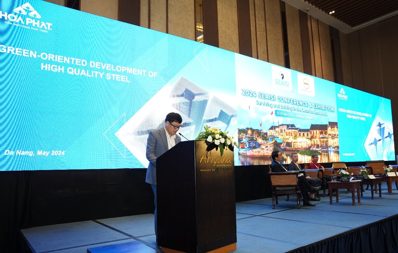 Từ ngày 13-16/5/2024 tại Cung Hội nghị quốc tế Ariyana - Đà Nẵng đã diễn ra Hội nghị và Triển lãm Thép Đông Nam Á 2024 (SEAISI Conference &Exhibition 2024). Với vị thế là nhà sản xuất thép lớn nhất Việt Nam cũng như khu vực Đông Nam Á, Tập đoàn Hòa Phát đã có bài tham luận giới thiệu định hướng đầu tư phát triển thép chất lượng cao, giảm phát thải khí nhà kính và hướng tới mục tiêu trung hòa các-bon trong tương lai.