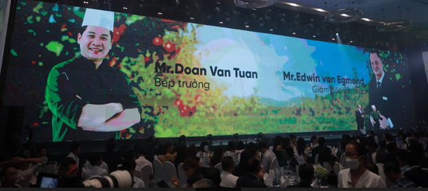 Mr. Edwin van Egmond – Giám đốc ẩm thực đánh giá: “Chúng tôi đã tổ chức rất nhiều những sự kiện quy mô lớn, có những lần số lượng khách lên đến 2000 người. Đây là lần đầu tiên có đơn vị tổ chức sự kiện lại yêu cầu 1 menu đồ ăn cầu kỳ gồm nhiều nguyên liệu đặc biệt đến vậy. Menu lần này là sự thử thách rất lớn đối với chúng tôi. Nhìn những thực khách thưởng thức đầy đủ những món ăn được dày công chuẩn bị, quả thật tôi rất vui. Có thể thấy Tập đoàn Hòa Phát rất trân trọng sự có mặt của những vị khách tối nay”.