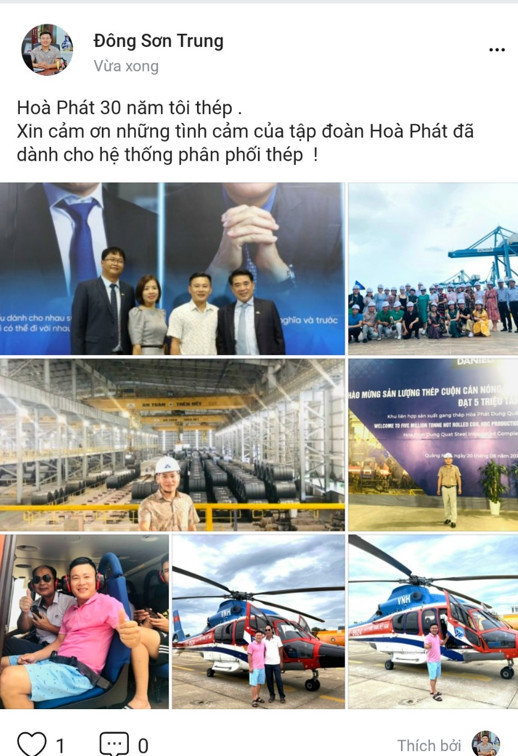 Anh Dũng, Phụ trách mảng kinh doanh sắt thép của Tập đoàn Cargill tại Việt Nam: Hòa Phát thật chu đáo và hết lòng với đại lý, một chuyến đi trọn vẹn cảm xúc và trải nghiệm nhiều dịch vụ độc, lạ như bay trực thăng ngắm toàn cảnh thành phố Đà Nẵng. Cảm ơn Hòa Phát, chúng tôi cảm thấy mình được trân trọng! Chúng tôi sẽ luôn đồng hành cùng Hòa Phát!
