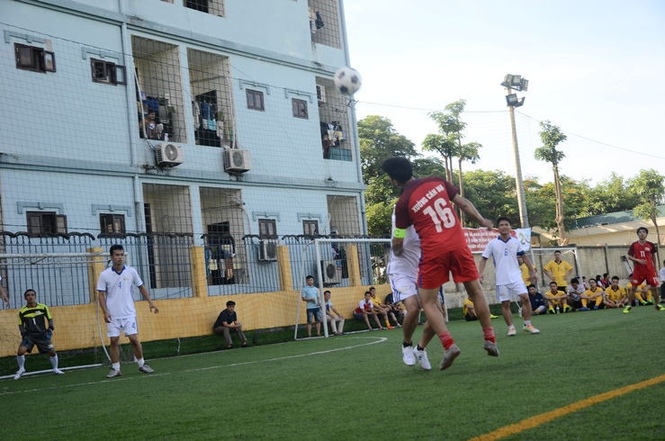 Lê Thế Phương bật cao đánh đầu mở tỷ số trận đấu cho đội Văn phòng công ty