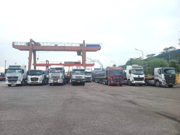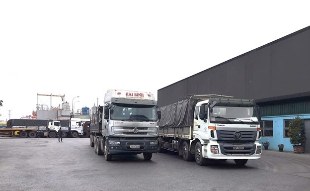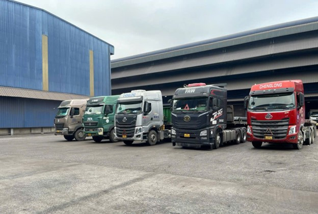 Đoàn xe lấy hàng nhộn nhịp tại Khu liên hợp Hòa Phát Hải Dương