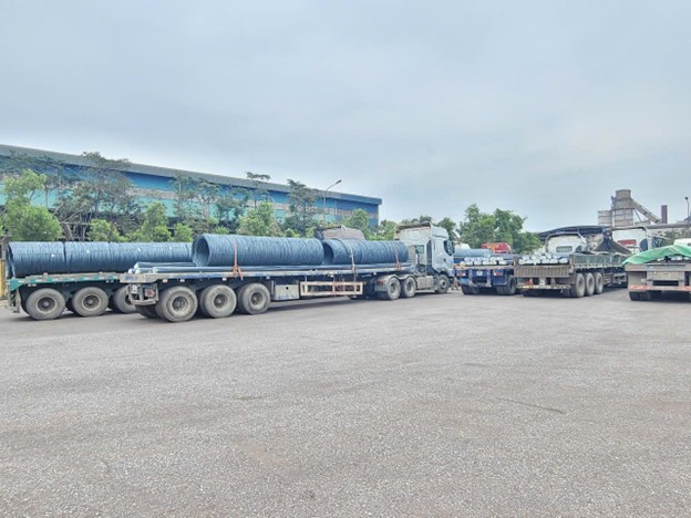 Những chuyến xe lấy hàng đầu tiên tại Ống thép Hòa Phát Hưng Yên