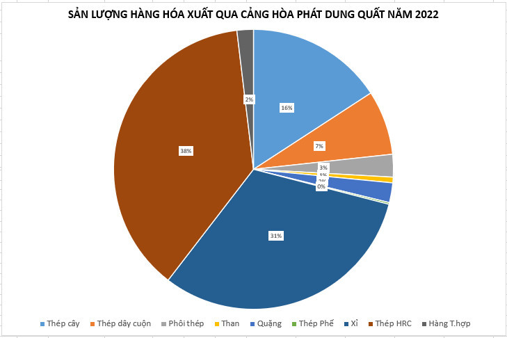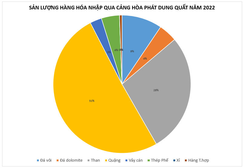 Năm 2022, tổng lượng hàng hóa xuất nhập khẩu tại cảng Hòa Phát Dung Quất đạt gần 20 triệu tấn. Trong đó, riêng nguyên liệu than, quặng là 10,6 triệu tấn.