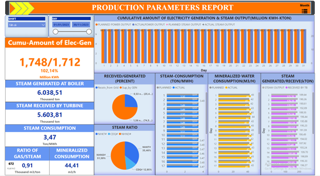Biểu đồ sản lượng phát điện Khu liên hợp gang thép Hòa Phát Dung Quất 11 tháng năm 2023