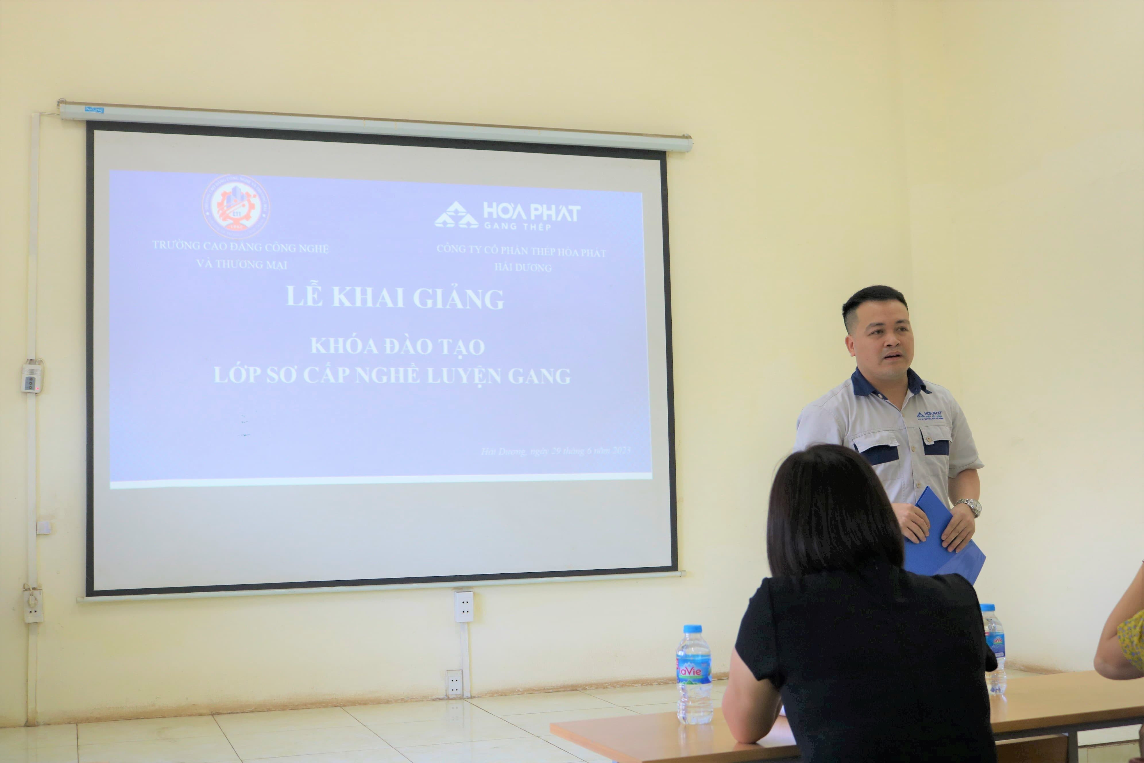 Tiếp nối thành công đó, Công ty tiếp tục phối hợp với Trường CĐ Công nghệ và Thương mại khai giảng lớp Sơ cấp nghề Luyện gang năm 2023. Mong rằng, trong thời gian tới nhà trường sẽ luôn đồng hành cùng Thép Hòa Phát Hải Dương trong hoạt động cung cấp và đào tạo nguồn nhân lực.