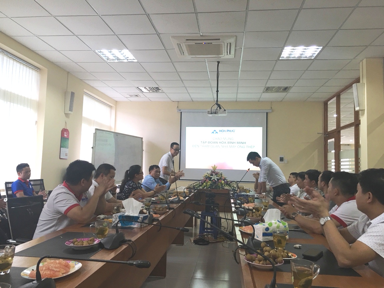 Phát biểu trong buổi làm việc của đoàn tại Nhà máy Ống thép, Anh Nguyễn Thái Sơn - Phó giám đốc Công ty TNHH Ống thép Hòa Phát kiêm Phó giám đốc Công ty TNHH Tôn Hòa Phát bày tỏ: “Các khách hàng, đại lý đặc biệt là Công ty Hòa Bình Minh tham gia chương trình đào tạo, tham quan nhà máy ngày hôm nay là vinh dự của Hòa Phát, bởi điều đó cho thấy Quý khách hàng dành sự quan tâm lớn đến các sản phẩm Tôn, ống thép. Hòa Phát cam kết sẽ luôn đồng hành, hỗ trợ, tạo điều kiện tốt nhất cho Quý khách hàng, nhằm duy trì và phát triển mối quan hệ hợp tác bền vững lâu dài giữa các bên với phương châm “Hòa hợp cùng phát triển”.