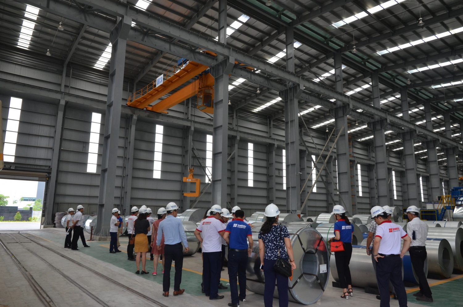 Khách mời nghe giới thiệu sản phẩm và tham quan Nhà máy Ống thép Hòa Phát Hưng Yên
