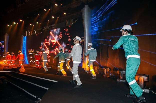 Hội nghị khách hàng thành công rực rỡ với những phút giây xúc động khi Tập thể lãnh đạo thép Hòa Phát lên sân khấu tri ân khách hàng, đại lý. Chương trình có màn trình diễn đầy tính nghệ thuật, thể hiện khát vọng vươn lên của thép Hòa Phát suốt chặng đường đã qua, đồng thời tái hiện đại công trường Khu liên hợp gang thép Hòa Phát Dung Quất đang ngày đêm bám sát tiến độ. Hình ảnh chiếc tàu chở thép xây dựng Hòa Phát vươn ra biển lớn thực sự mang đến cho khách mời sự ngạc nhiên và thích thú.