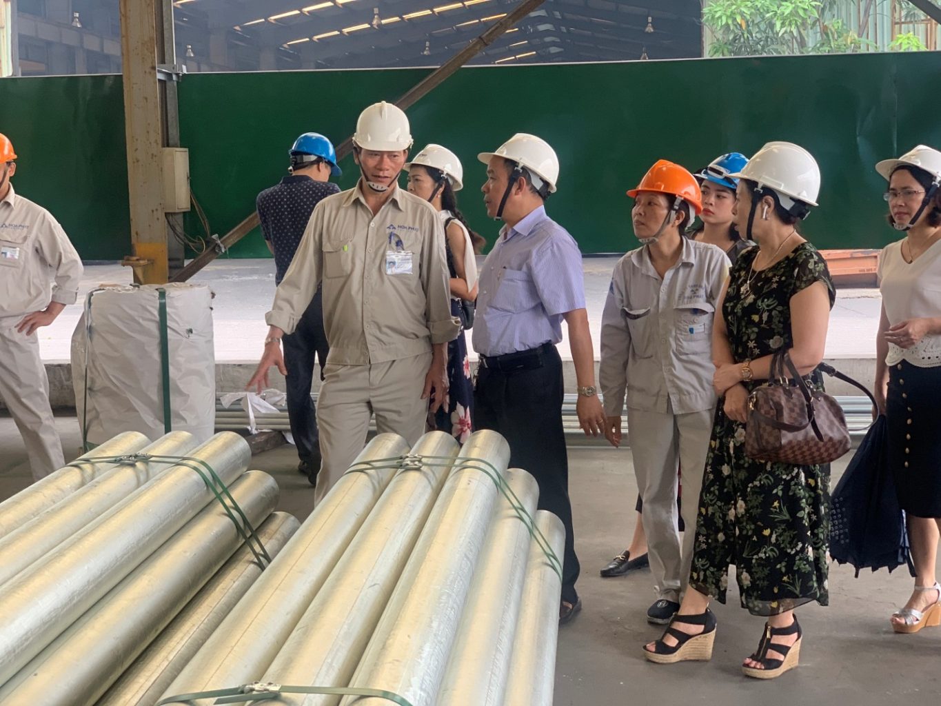 Ông Nguyễn Thái Sơn – PGĐ Công ty dẫn đoàn đi thăm Nhà máy Ống thép HP Hưng Yên
