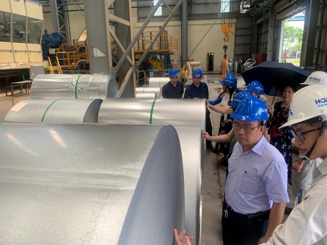 Nhân dịp này đoàn cũng đã ghé thăm Nhà máy Tôn mạ màu Hòa Phát. Nhà máy có hệ thống trang thiết bị hiện đại, nhập khẩu từ các quốc gia hàng đầu trên thế giới về sản xuất tôn mạ như Ý, Đức, Autralia. Các sản phẩm của Tôn Hòa Phát đáp ứng được các tiêu chuẩn khắt khe như: Jis – Nhật Bản, ASTM – Mỹ, BSEN – Anh, AS – Úc và sản phẩm của Công ty đã được chứng nhận chất lượng bởi Trung Tâm tiêu chuẩn Đo lường kỹ thuật 1 – Quatest 1.