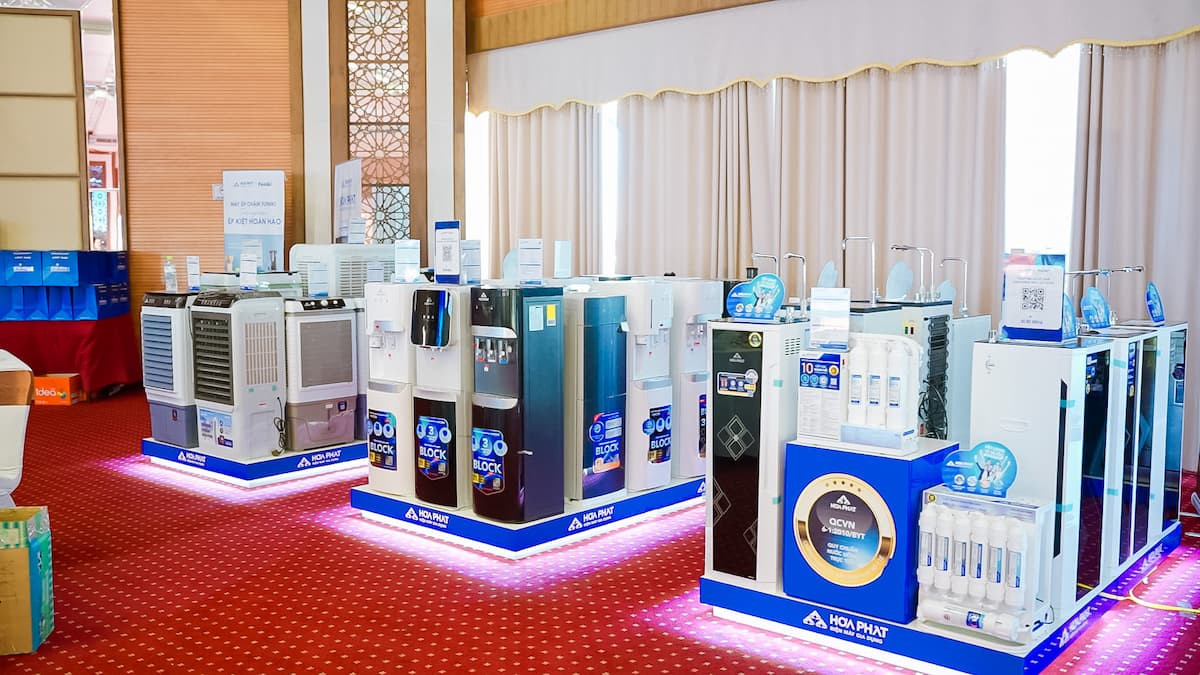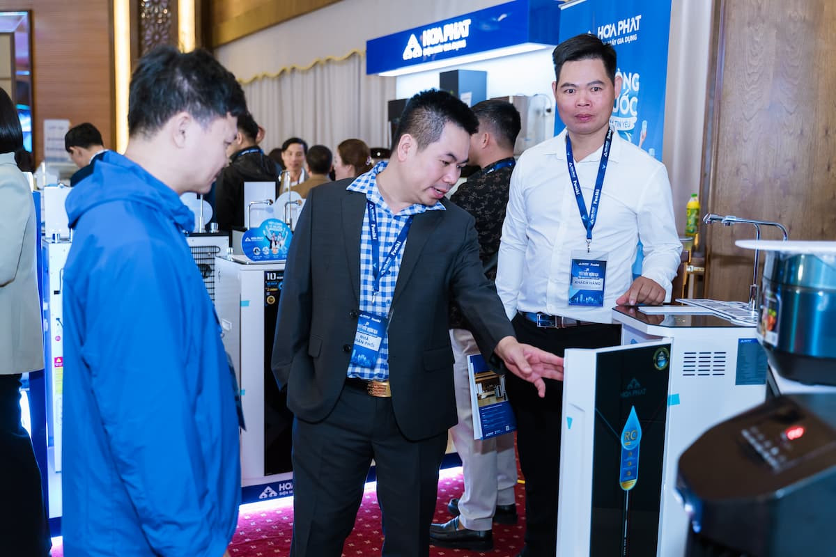 Khách hàng tham quan các sản phẩm của Công ty Điện máy Gia dụng Điện máy gia dụng nhưng Hòa Phát đã có sự đồng hành từ các đại lý khi đưa những sản phẩm đầu tiên ra thị trường từ năm 2022 như Máy làm mát không khí, Máy lọc nước. Nhà phân phối Đồng Lý (Bắc Giang) cho hay: “Chúng tôi chủ yếu quyết định nhập và bán sản phẩm Hòa Phát vì tin tưởng vào uy tín của thương hiệu và chất lượng sản phẩm”.