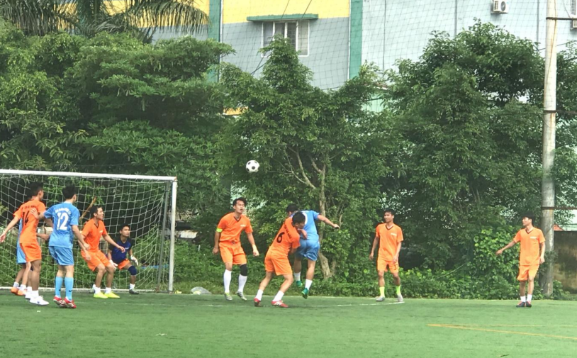 Pha đánh đầu nguy hiểm của Công Cường - số 10 Văn phòng Công ty - trước khung thành Tôn mạ màu